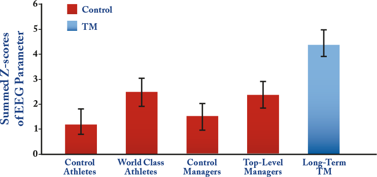 Los niveles más altos de coherencia de ondas cerebrales también se observan en "personas de rendimiento máximo", personas que son excepcionalmente creativas e inteligentes. Un cerebro ordenado crea pensamientos, habla y comportamiento más ordenados. Con la MT, podemos disfrutar de formas nuevas y mejoradas de pensar, hablar y actuar. De hecho, un cerebro más coherente puede cambiar toda nuestra experiencia de la vida en una dirección muy positiva.